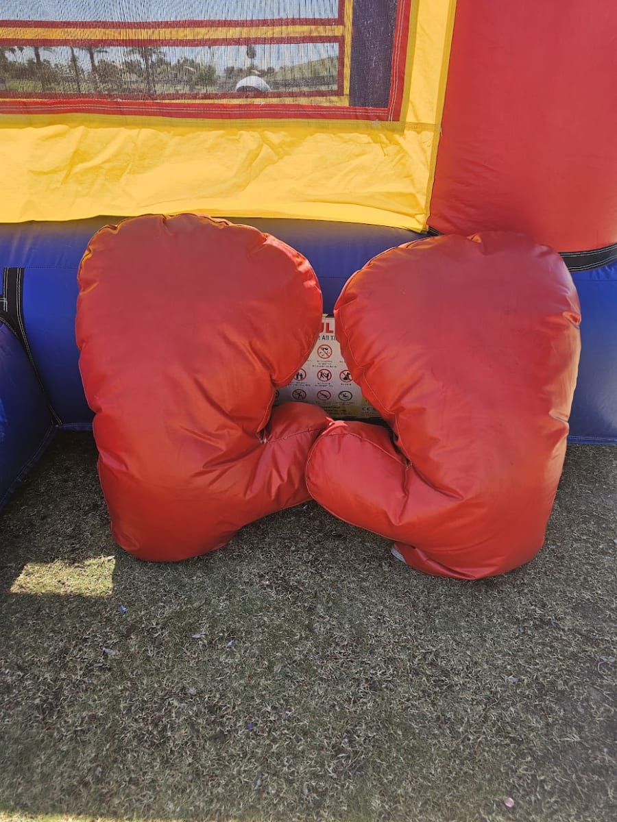 ARE YOU READY TO RUUUUUMBLE? 🥊🥊 If are looking for something different for your event.. consider adding a boxing ring! This boxing arena has a 15' x 15' jumping surface and see-through netting so that your spectators don't miss a thing! Perfect for all ages. If you are done throwing some punches simply remove the gloves and use as a standard bounce house. Rental includes 2 sets of boxing gloves (red/blue). Adult supervision is required. ** 2gether We Bounce is not responsible for any injuries that may occur by using this item **