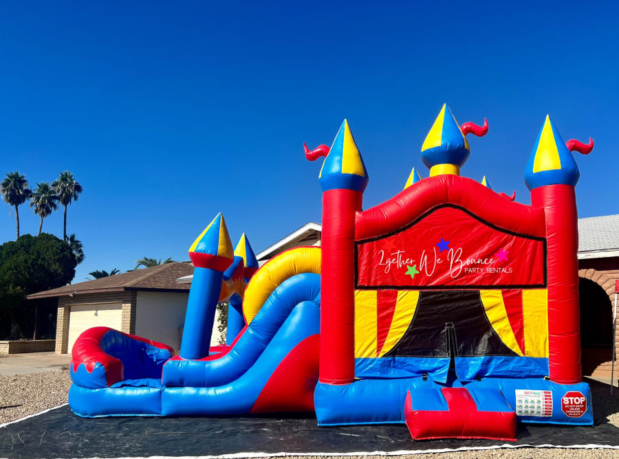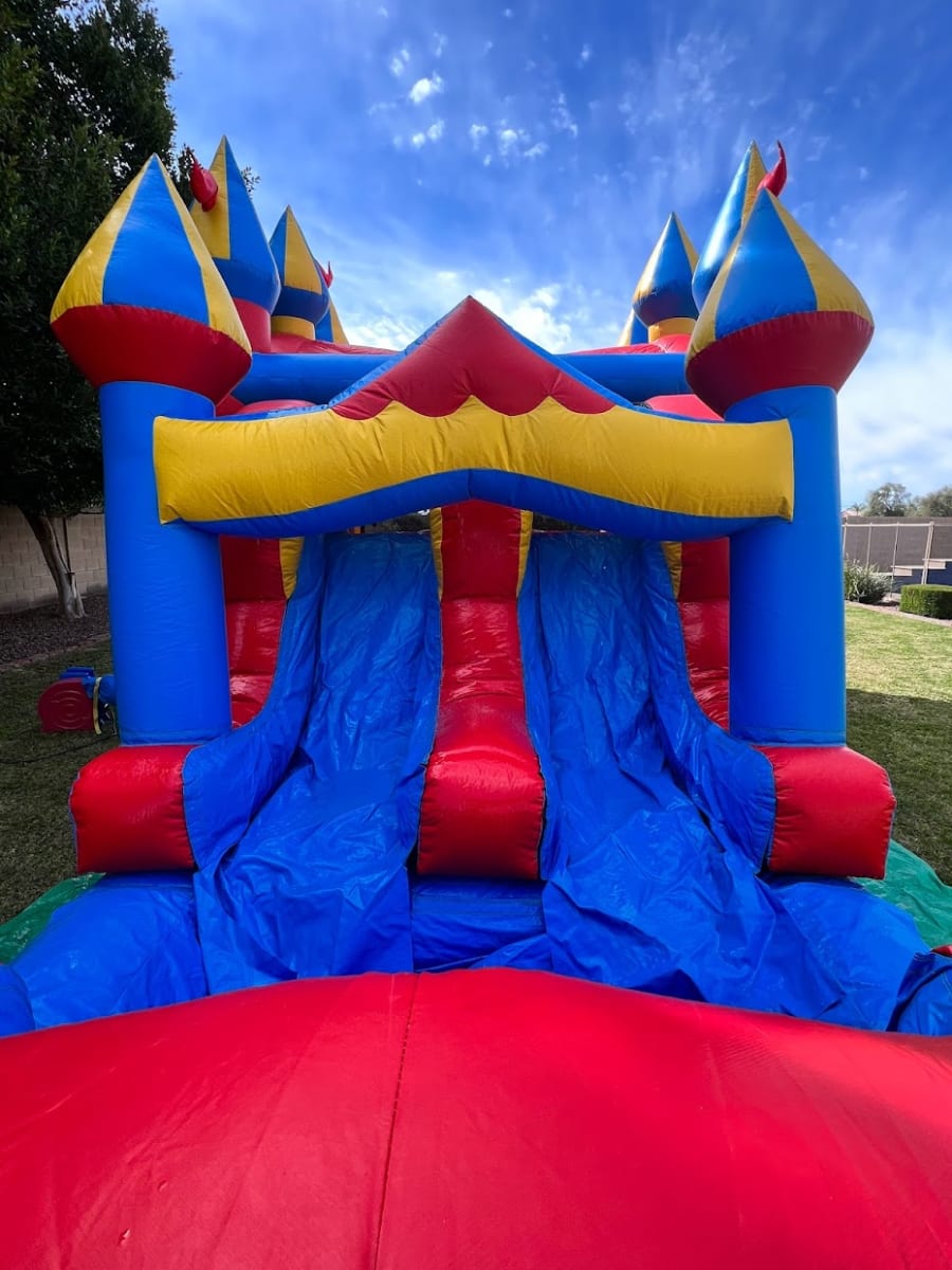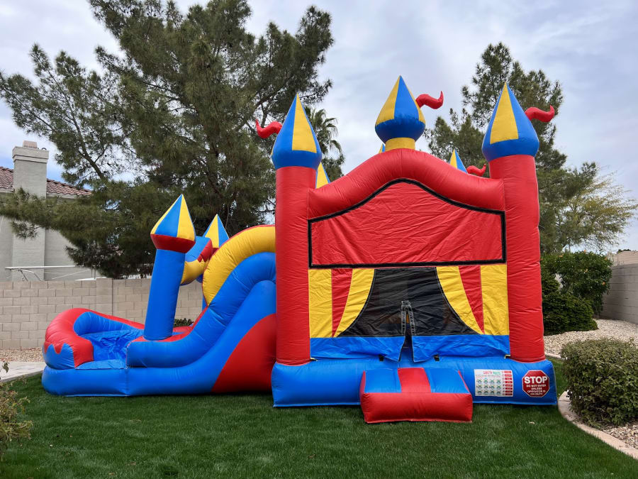 Step right up and experience the magic of the Big Top Double Lane Combo! This inflatable brings the excitement of the circus straight to your party, with a colorful bounce house and two thrilling slides for double the fun.