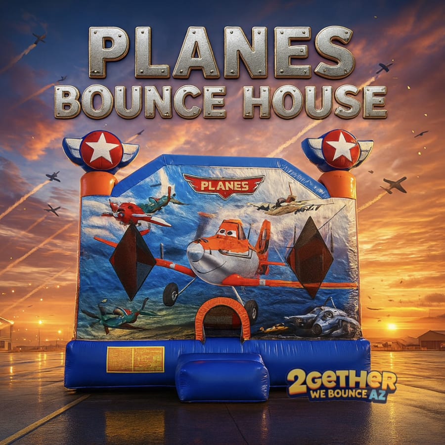 Take party fun to new heights with the Planes Bounce House! Featuring vibrant artwork of beloved characters from Disney’s Planes, this inflatable will have kids' imaginations taking flight as they bounce inside and brings sky-high excitement to any birthday party, school event, or community gathering.