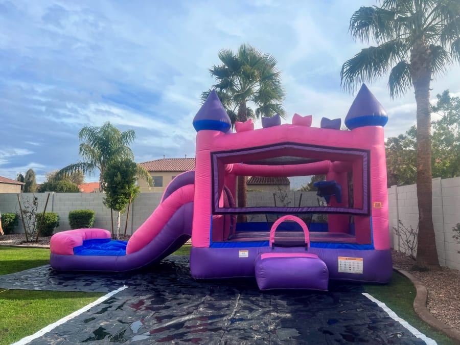Get ready to bring the bounce and the glam to your next party with the Princess Bounce & Slide Combo — where vibrant pinks and purples meet nonstop fun! This magical inflatable features a spacious bounce house and an exciting built-in slide that’s perfect for energetic little royals.