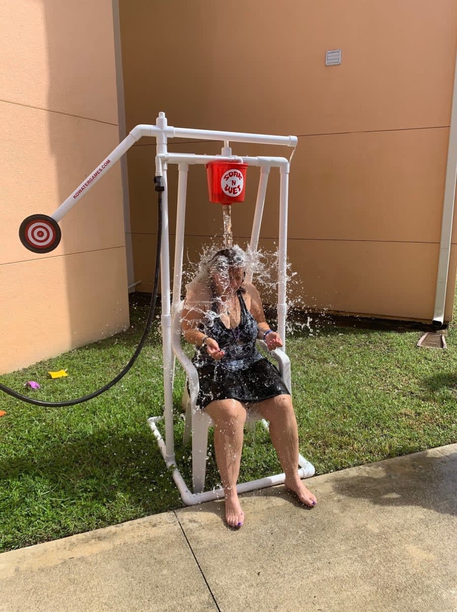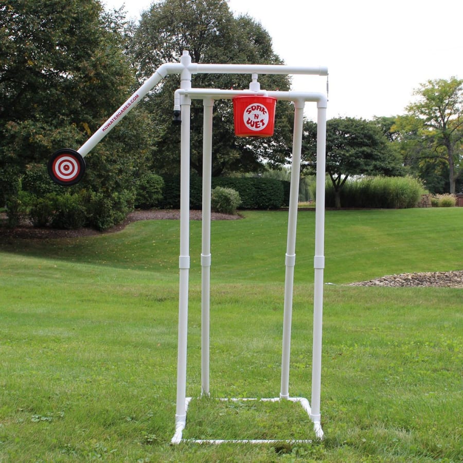 The Soak 'n' Wet is a safe and portable backyard water dousing game that is great for all ages. It is a less expensive and safe alternative to your standard dunk tank. It comes equipped with a water fill attachment for easy filling. It can hold up to 5 quarts of water and is perfect for fundraisers, rentals, churches, schools, park districts, camps, and more. Since you are not actually "dunking" your target this makes a perfect addition for your (smaller) guests who still want to participate in the fun but are too small to be dunked. Note: This item is available as an add-on only.