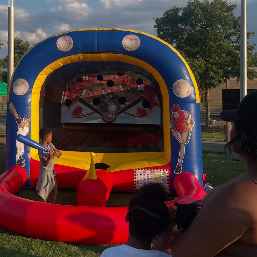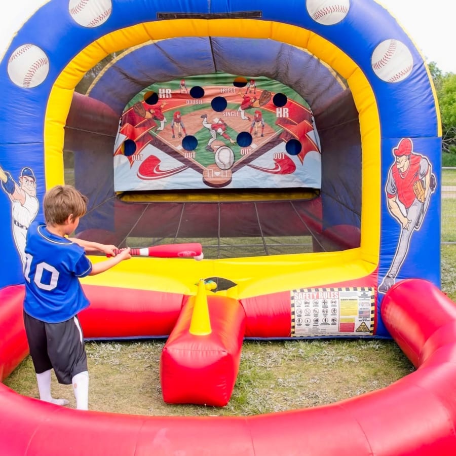 This inflatable game brings all the excitement of America's favorite pastime right to your party or event. Players test their batting strength and accuracy by aiming for the targets holes inside the inflatable stadium set up - making it perfect for friendly competition and hours of fun.