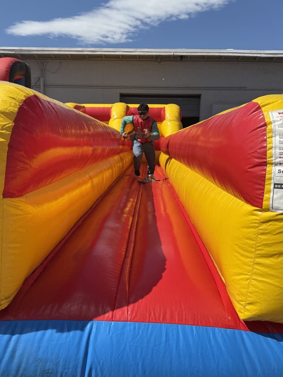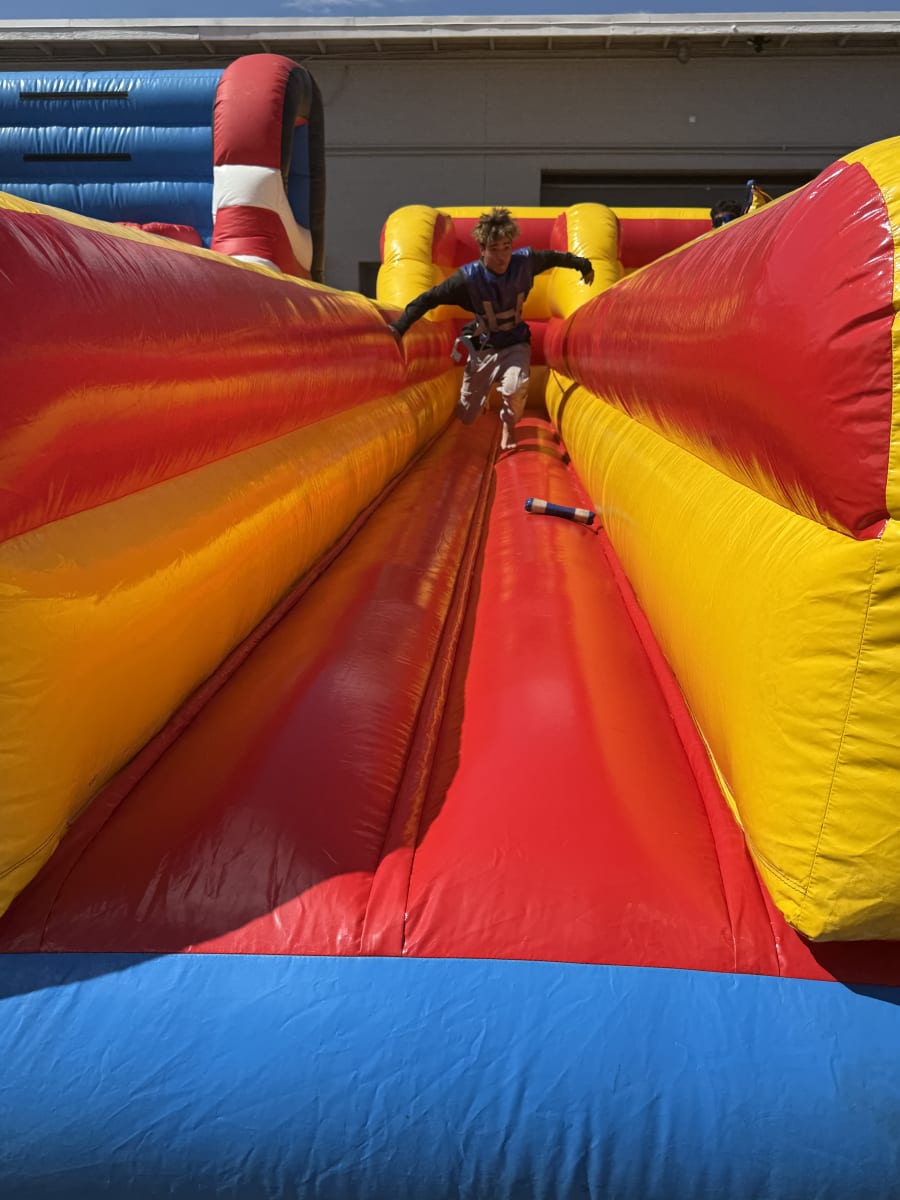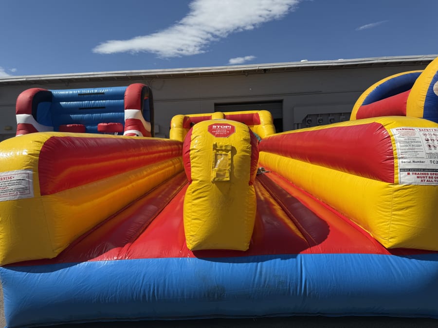 Our inflatable Bungee Run is the ultimate showdown of strength, speed, and laughter. Two players race side by side, strapped into a harness attached to giant bungee cords. The goal? Run as far down the colorful inflatable lane as you can before the bungee yanks you back in the most hilarious way possible!