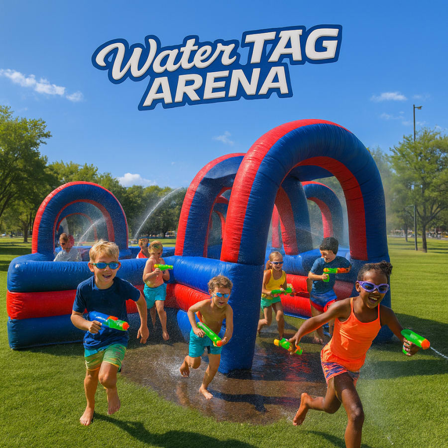 Get ready to unleash epic splash battles in our inflatable Water Tag Arena! This vibrant red-and-blue battleground is the ultimate summer showdown for kids (and let’s be real, adults too ๐). Equipped with misting water jets and sneaky cover spots, it’s perfect for birthday parties, school field days, church events, or just surviving that Phoenix heat ๐ฅต๐ด.