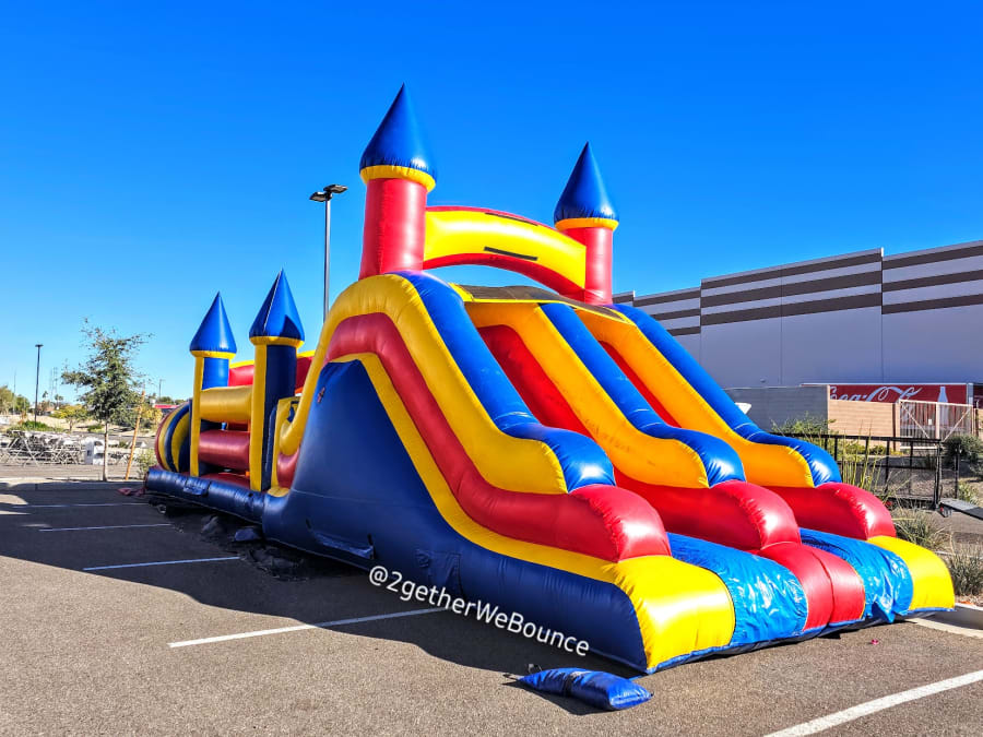 Run up and slide in our multi-color obstacle! This portion of the full Multi-Color Obstacle features the dual slide where two competitors can race up and down the slide to see who is the fastest. Please Note: This only includes the slide portion (see additional pictures for more info).