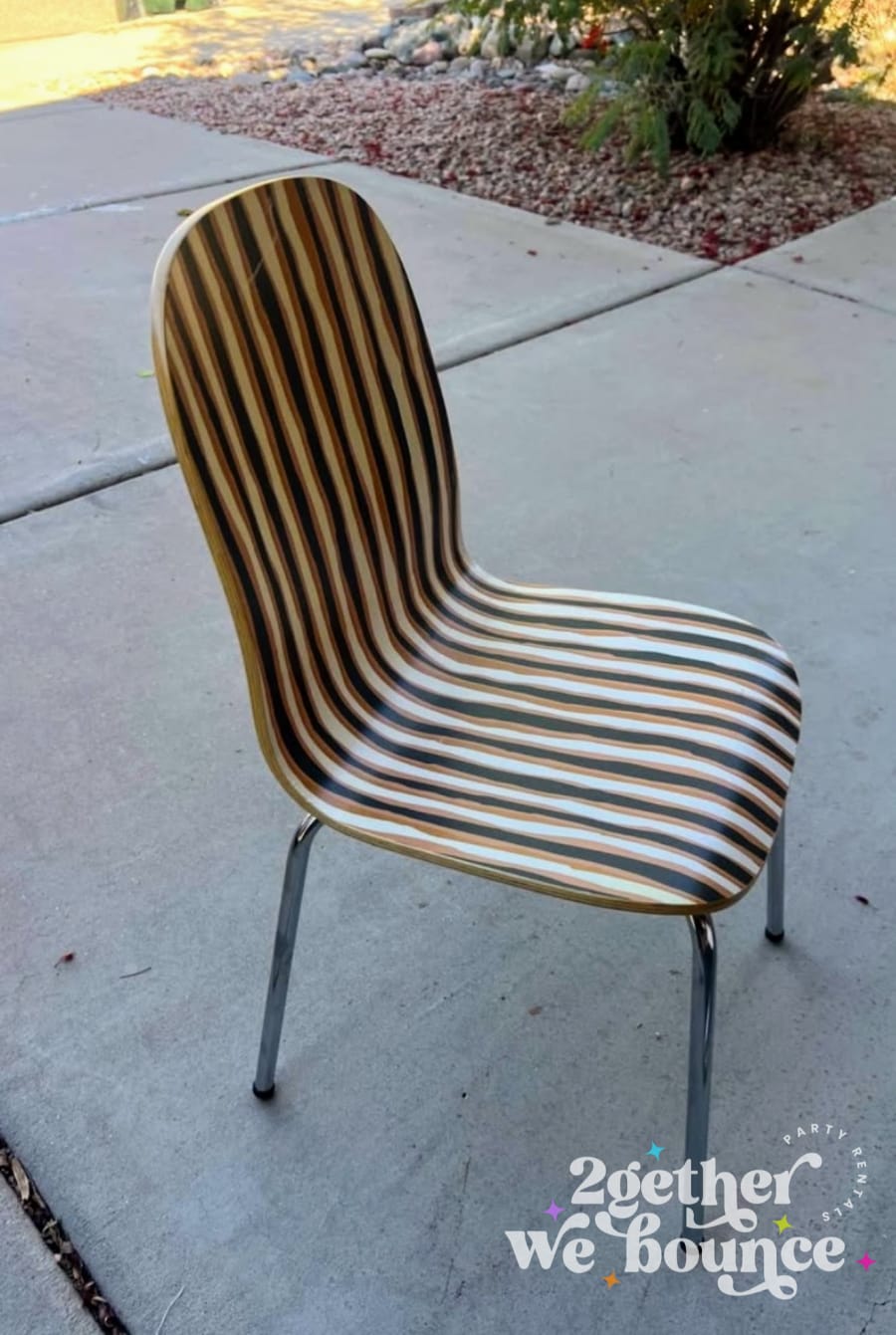 Designed with a sleek stripped pattern inspired by natural wood, these chairs are the perfect blend of style and durability. The contoured seat offers comfort for little explorers, while the sturdy chrome legs keep them stable during all the excitement.