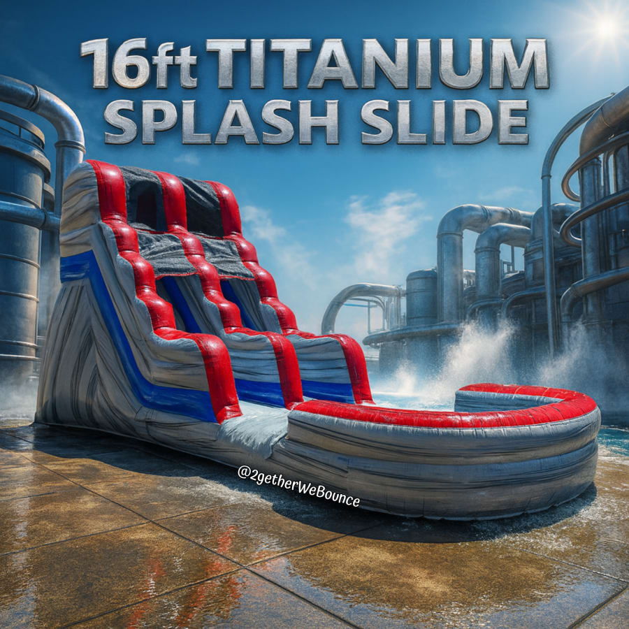 Bring the wow factor to your next party with the 16ft Titanium Splash Slide!