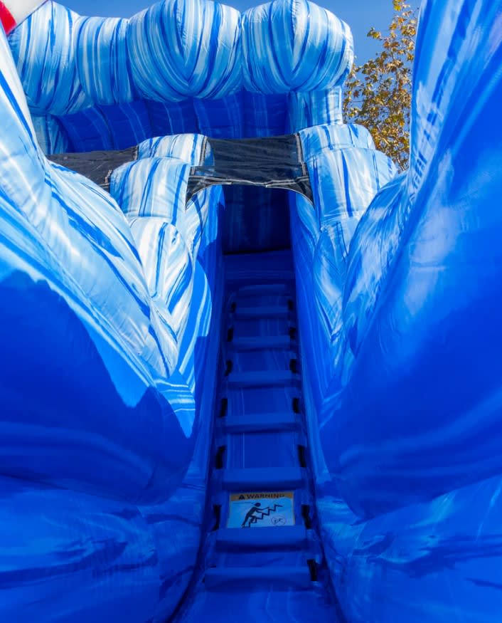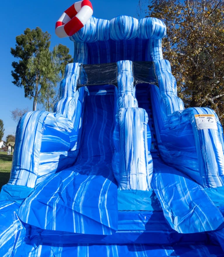 Put your anchor's down and get ready for a splashin' good time. ⚓⚓ Take a ride down this beautiful blue marbled water slide with a large anchor nestled on the end making the perfect pairing for any nautical themed event.