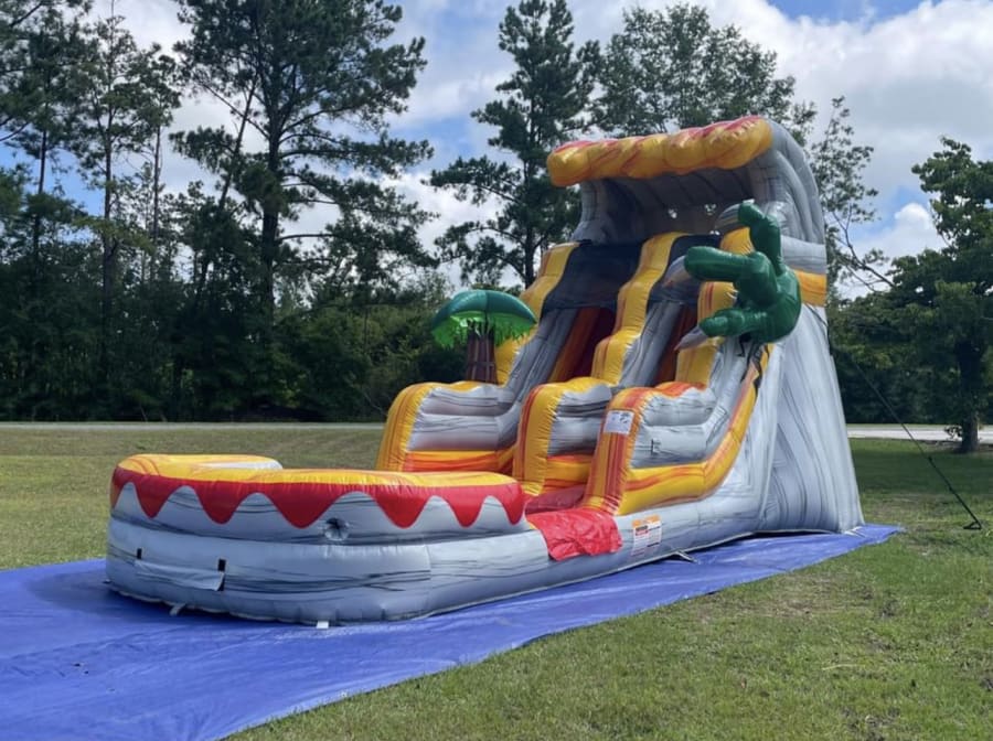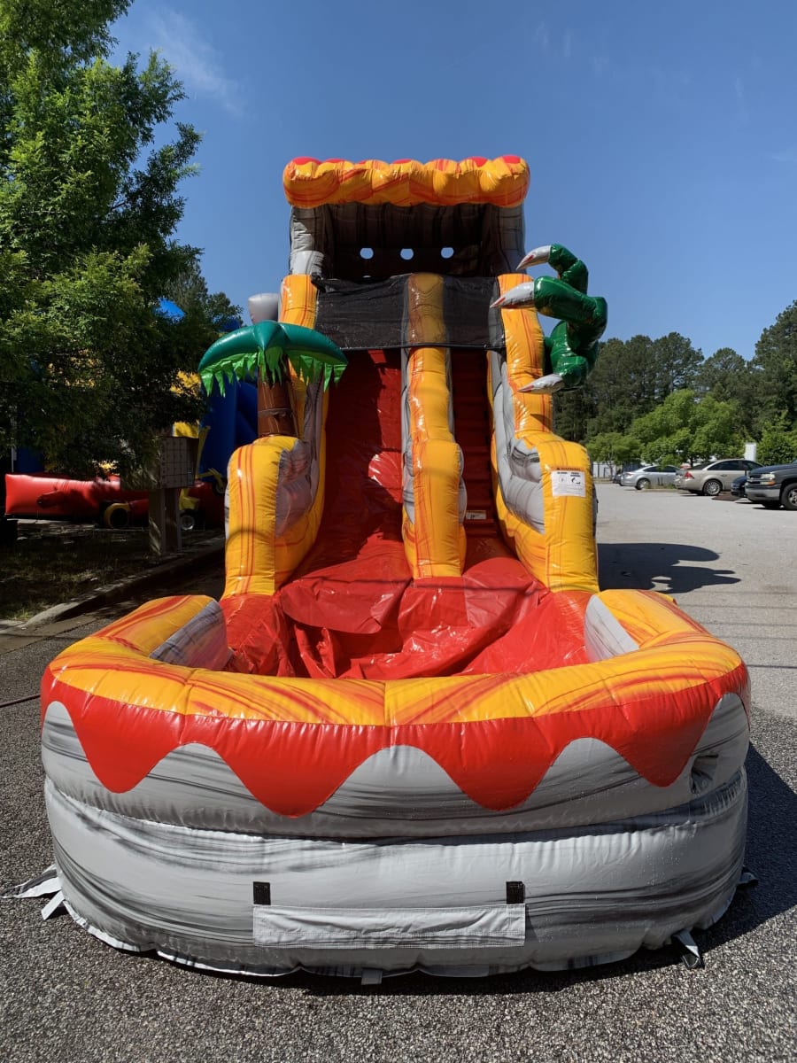 Our Small T-Rex water slide is perfect for the Dino-Enthusiasts ready for an adventure. If you are looking for something bigger, make sure to check out our other Dino Slides!