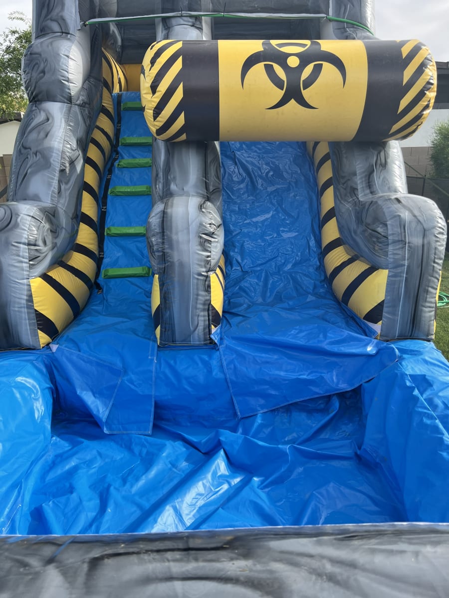 Nuclear and Radioactive signs around the slide as well as caution tape warn you of the adventures that lie ahead.